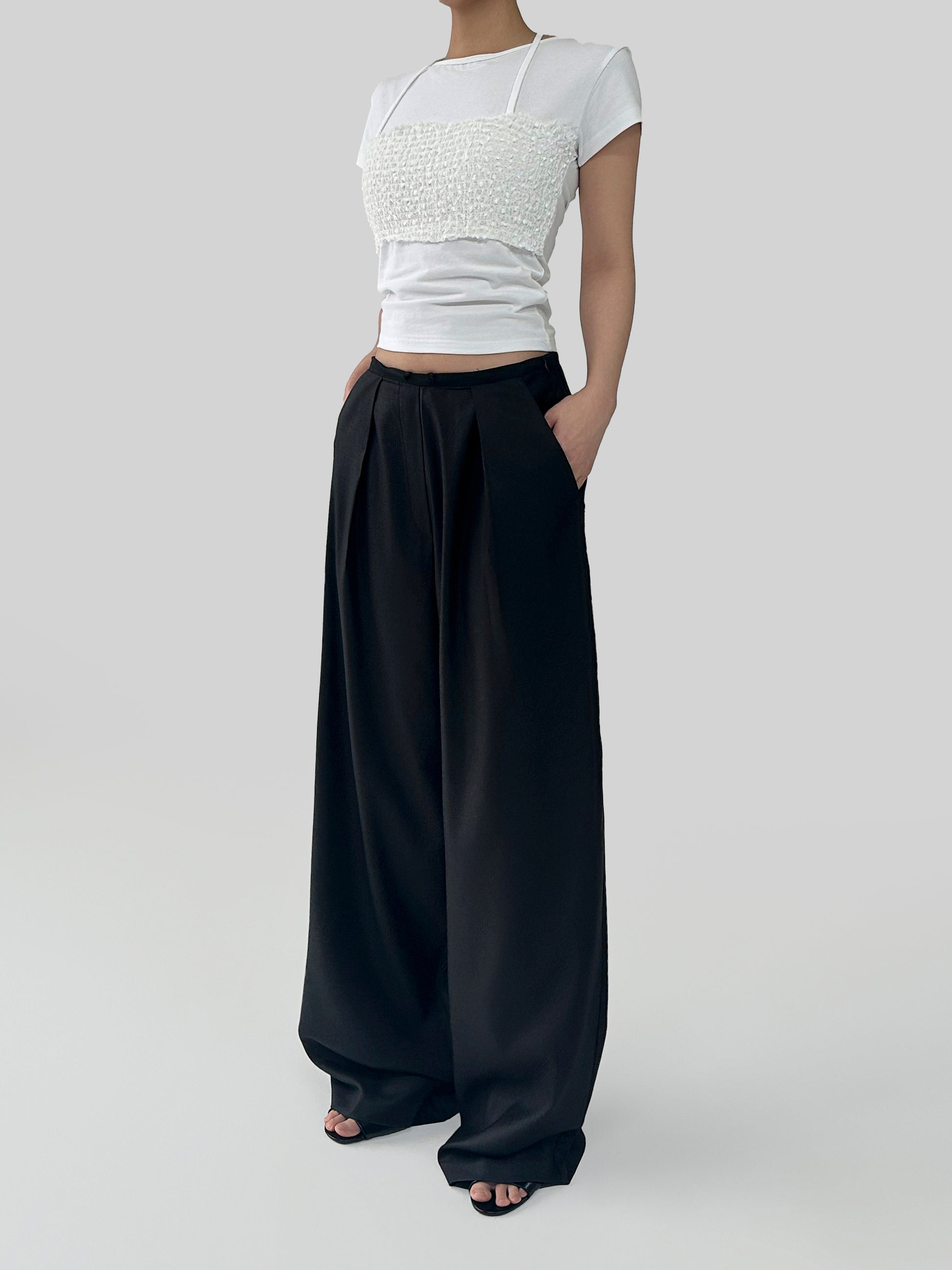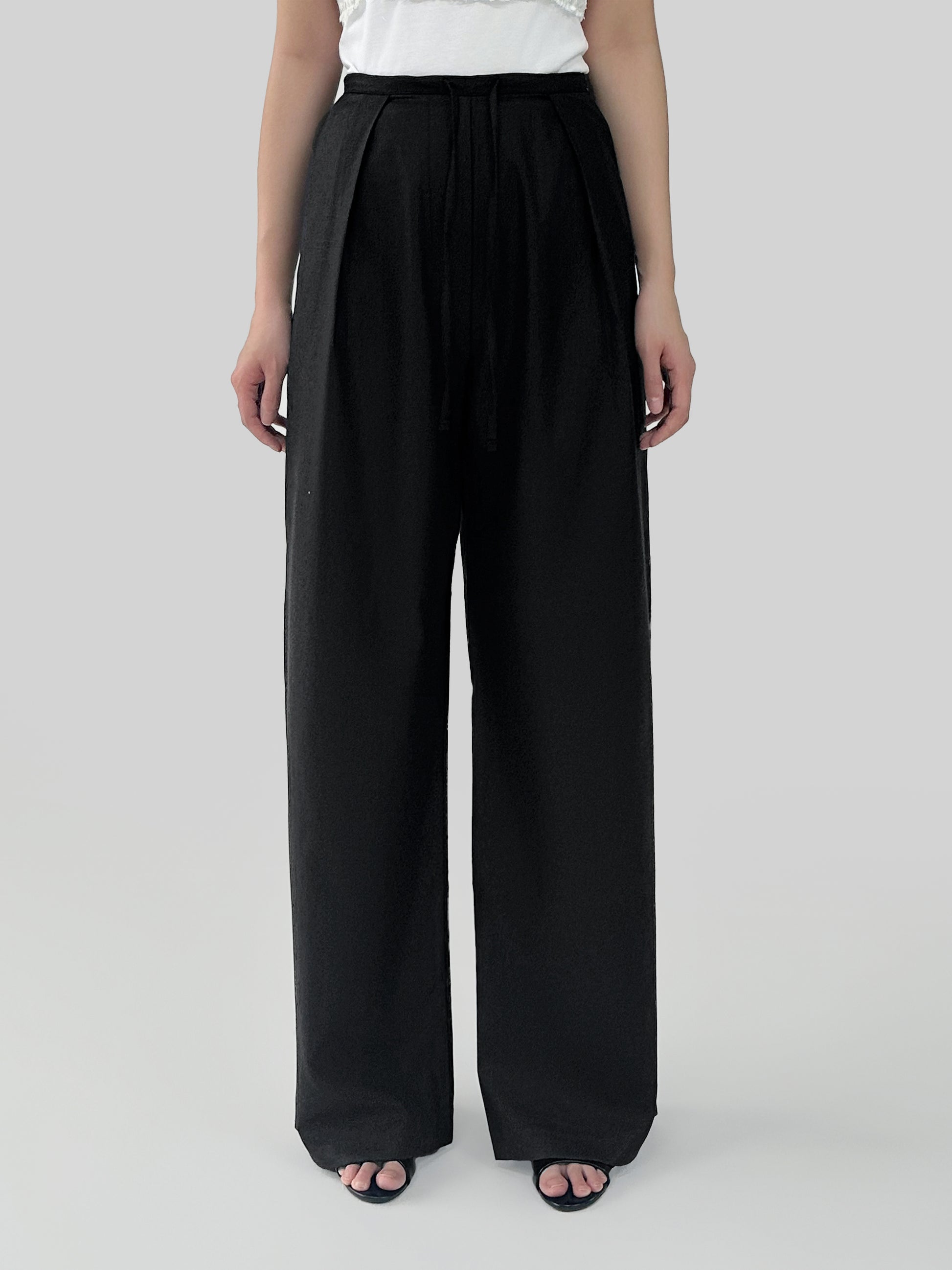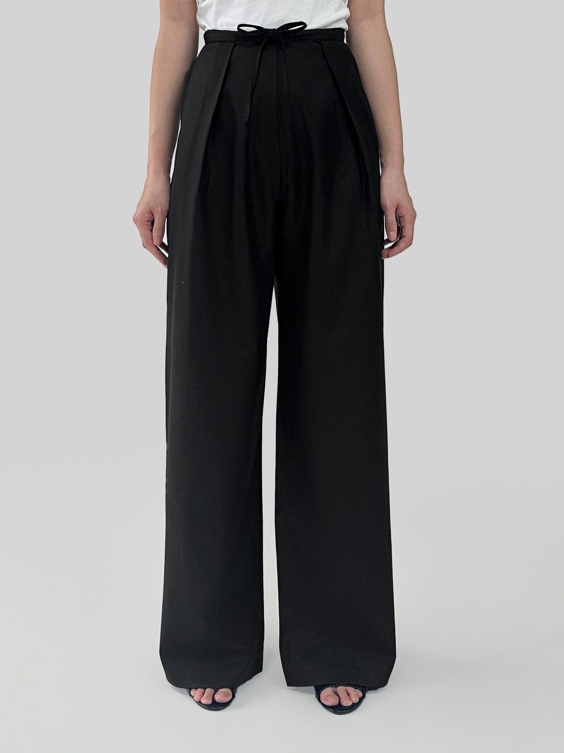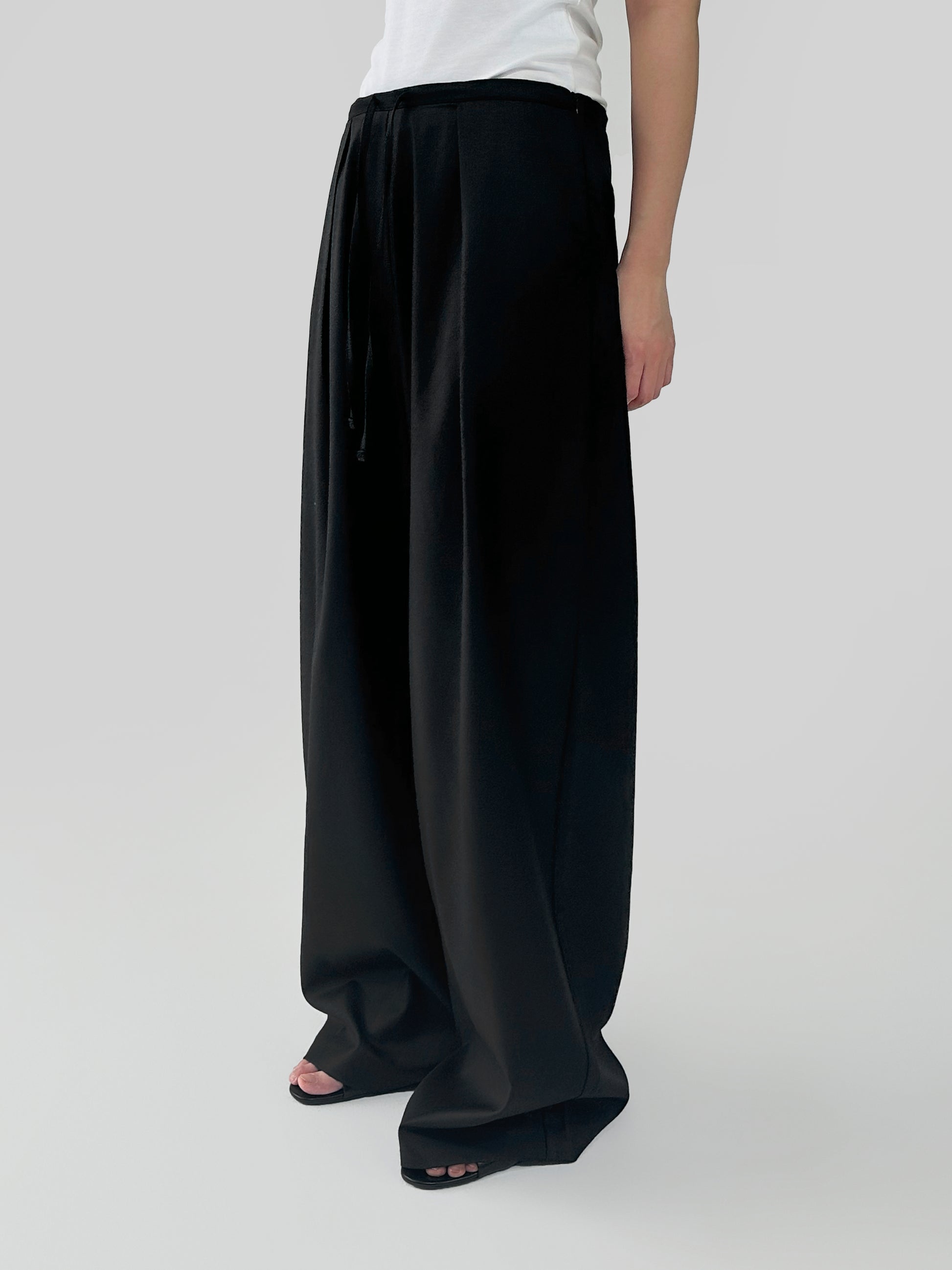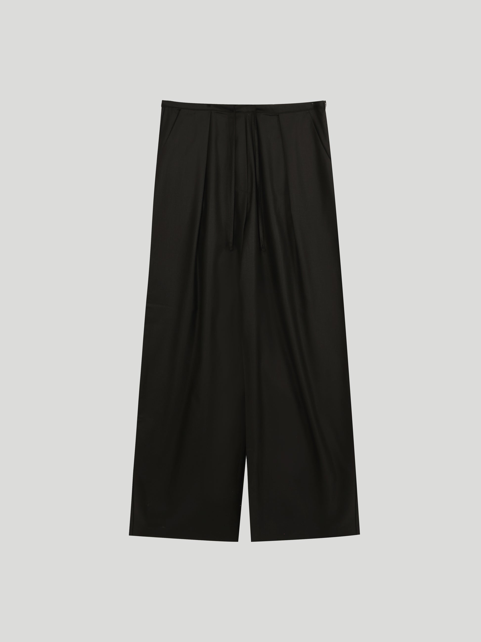 These relaxed wide-leg pants are crafted in a soft, fluid fabric that drapes beautifully and moves with you. The mid-rise elastic waistband with an adjustable drawstring offers a custom fit, while subtle front pleats add a touch of structure and sophistication.