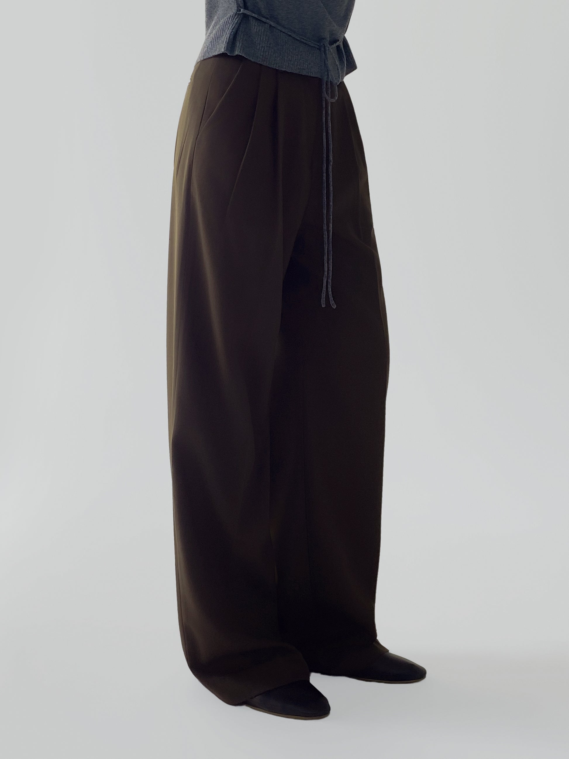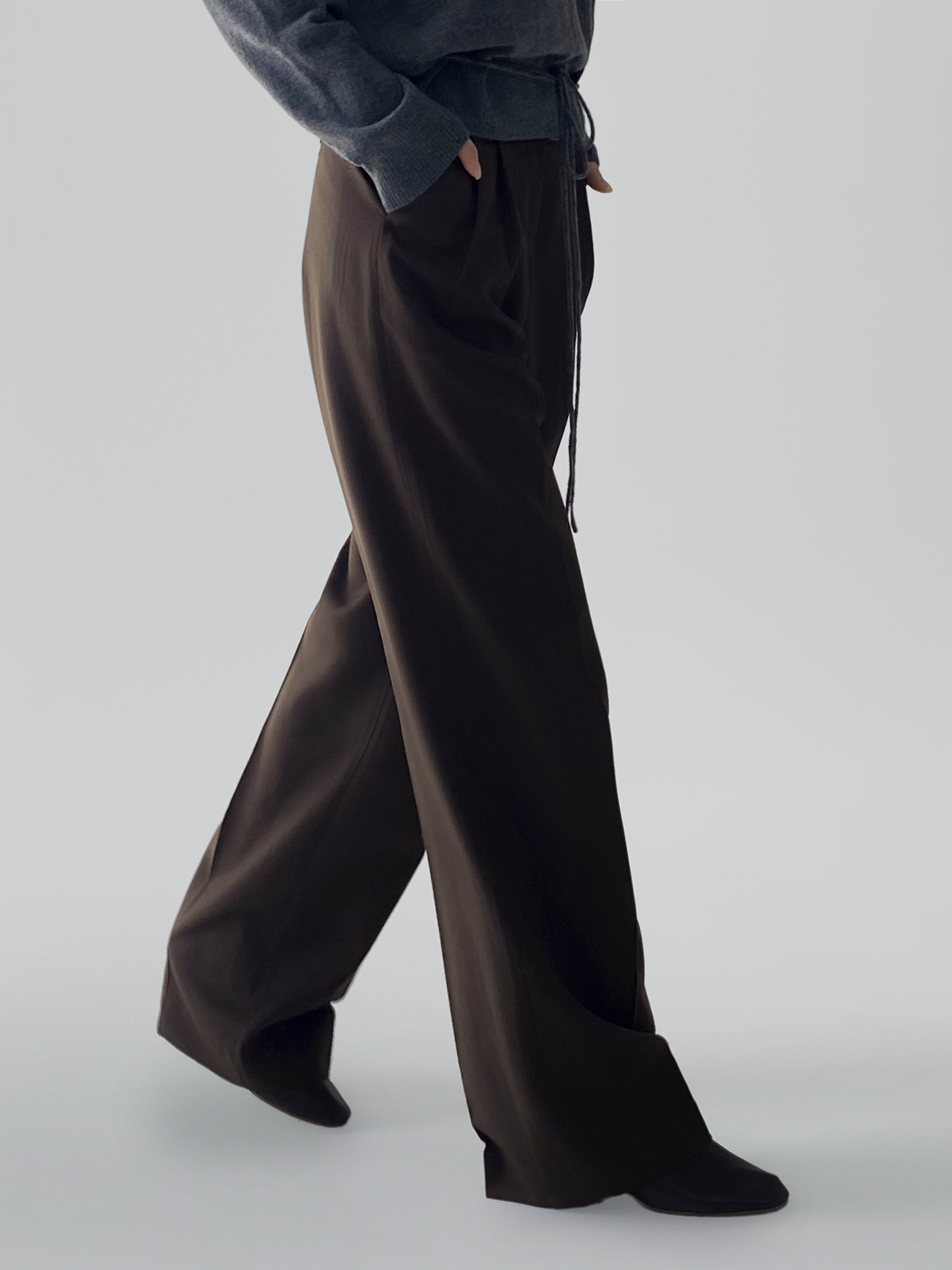 Crafted from a refined wool-twill blend, these trousers drape beautifully while offering warmth and breathability for all-day wear. The relaxed silhouette is refined with sharp front pleats and loose, wide legs, creating a timeless shape that transitions seamlessly from office to evening.