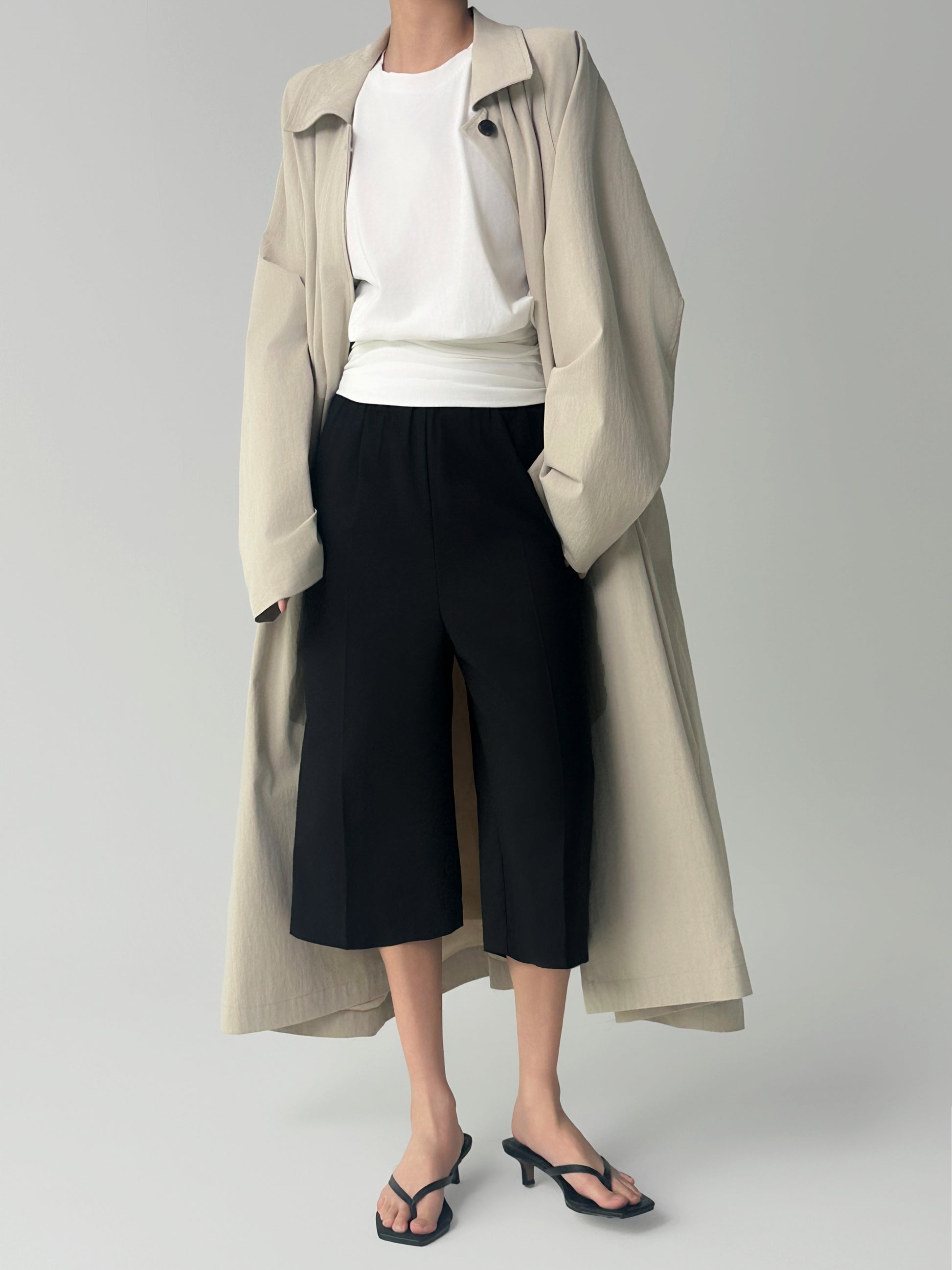 The softly ruched hem contours the waist, striking a delicate balance between form and ease. Crafted from a smooth cotton blend, it’s perfect for layering or making a minimalist statement on its own.